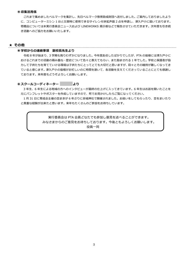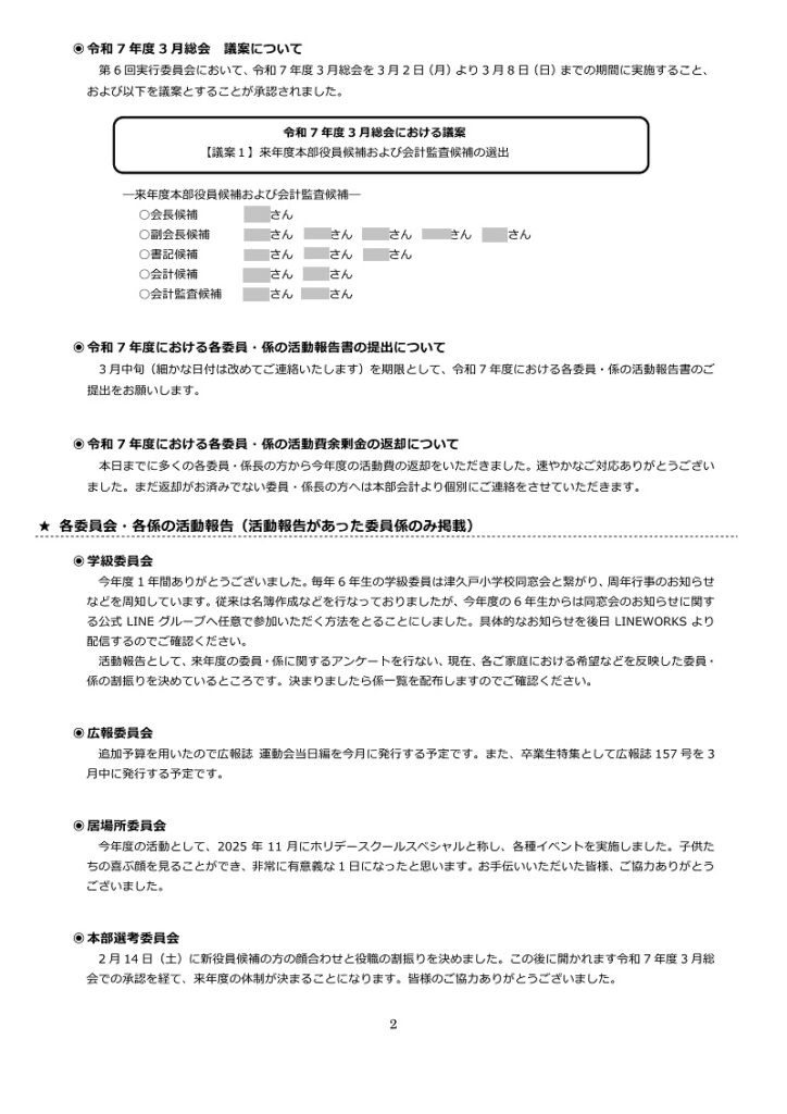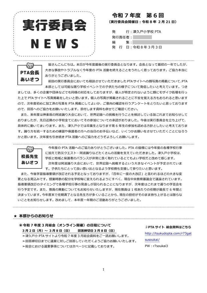 実行委員会ニュース(議事録)を3月3日に発行(LINE WORKSにて配布)しましたのでご確認ください。