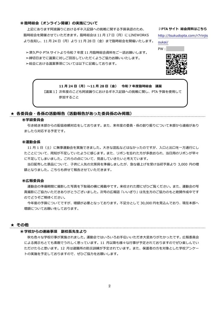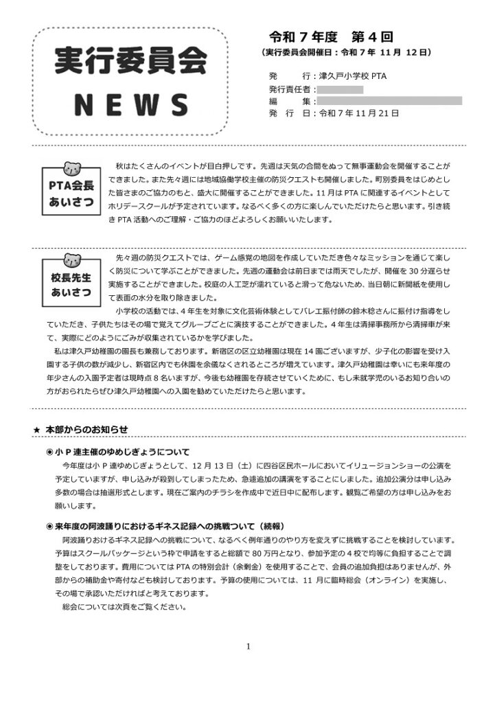 実行委員会ニュース(議事録)を11月21日に発行(LINE WORKSにて配布)しましたのでご確認ください。